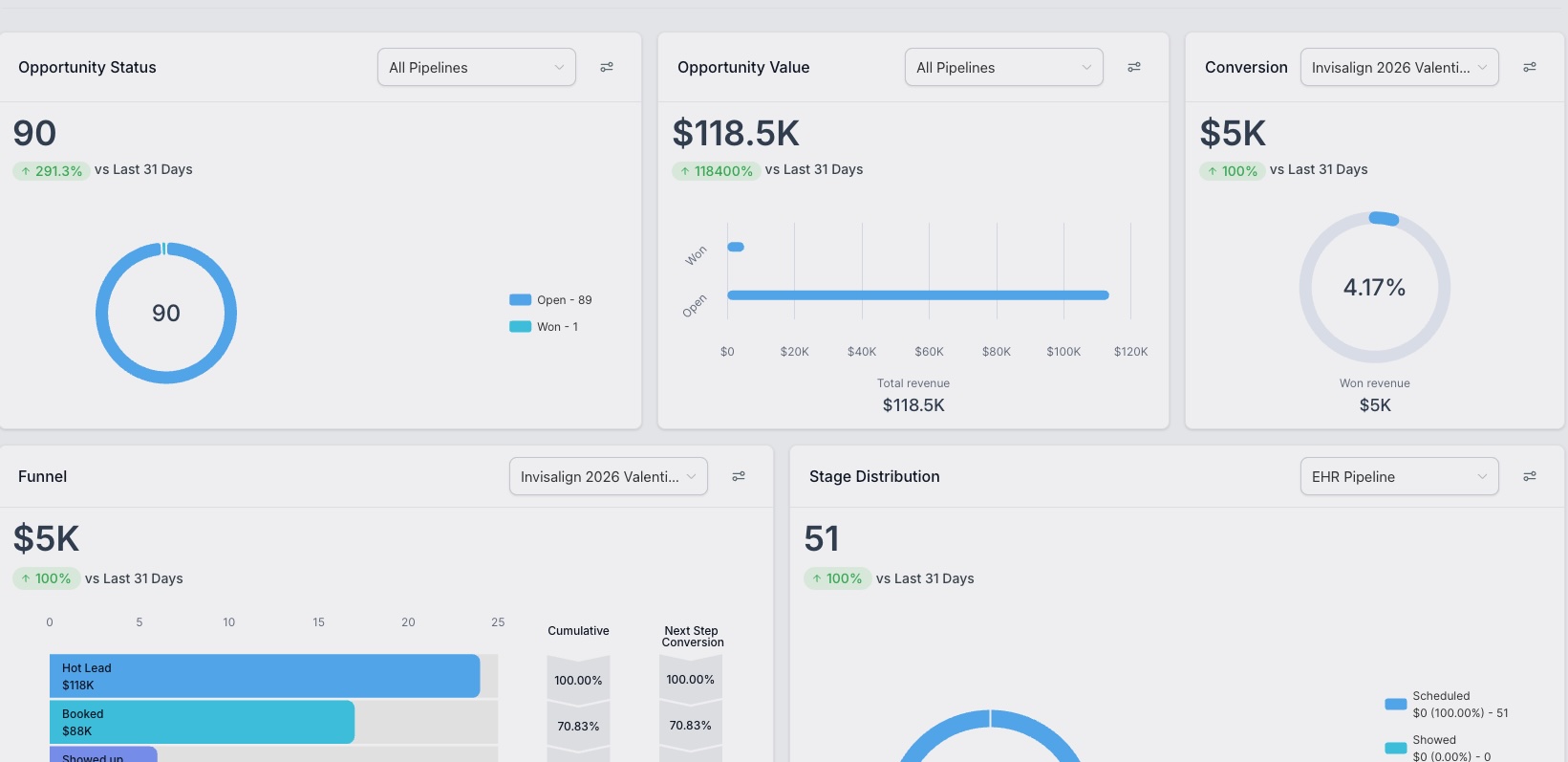 We don’t optimize for “lead floods.” We optimize for booked, qualified consults. Volume is adjustable — production is the target. If your schedule fills, we scale responsibly. The goal isn’t chaos; it’s predictable high-value cases that your team can confidently convert.